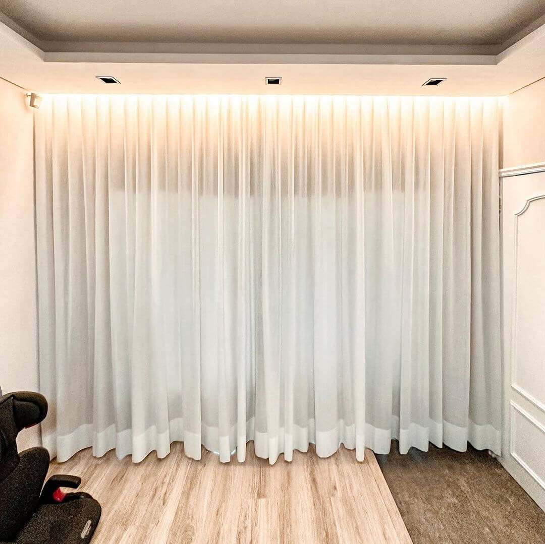 Voil Gaze de linho são tecidos translúcidos, que permitem que a luminosidade externa passe parcialmente para dentre do ambiente. O acessório tem a capacidade de controlar a temperatura e claridade do local, além de garantir privacidade.
