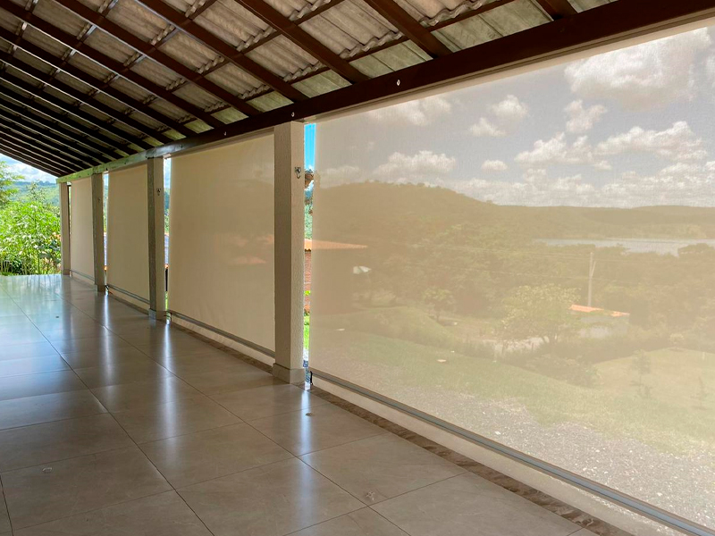 Feita em uma só tela, que pode ser fabricada em diversas cores e texturas, com e sem blackout, inclusive com a tela solar, muito utilizada em fechamento de sacadas, pois além de proporcionar privacidade ao ambiente, filtra os raios ultra violetas.
